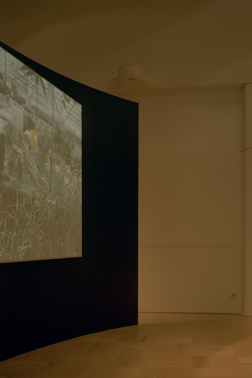 Set in the former temple of a masonic lodge, the public program constellations for futures hosted a series of events in various forms (lectures, film screenings, performances …). In relation to the aim to discuss consequences of the current crisis in a horizontal manner, the mono-directional characteristics of the provided room seemed misfit. In reaction, a new circular perimeter is introduced within the existing space, in the form of a curved wall holding a projection screen, an orthogonal frame structure housing technical support, and a line directly drawn on the floor.