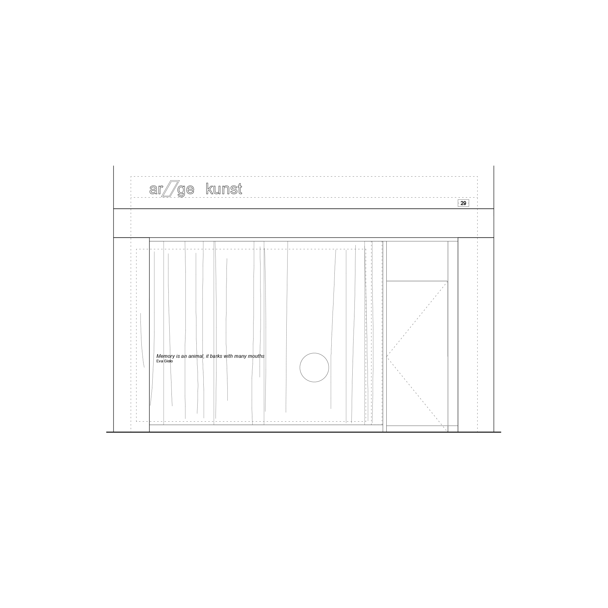 The artist run gallery AR/GE Kunst is located in one of the busiest shopping streets of the city of Bolzano. Like many of the shops around, the architecture of the artist-run gallery consisted of a fully glazed shop window and a deep interior space placed behind a large vitrine.