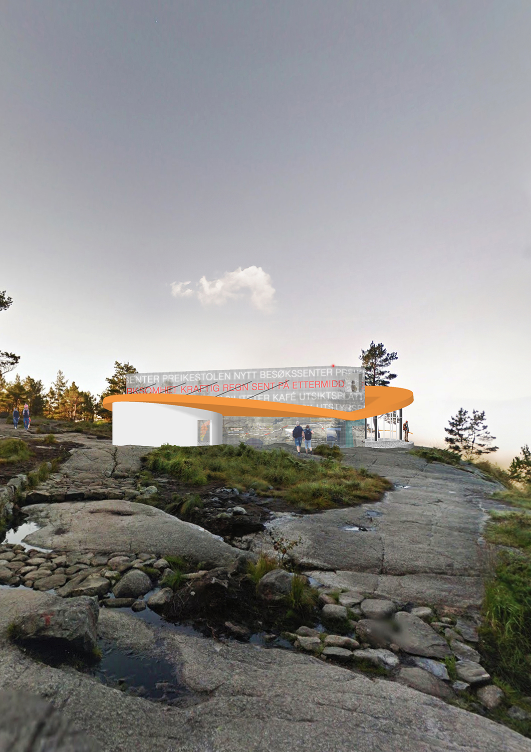 A recreational and informatic kiosk at the gateway of the Preikestolen fjord hikeway of Norway.
